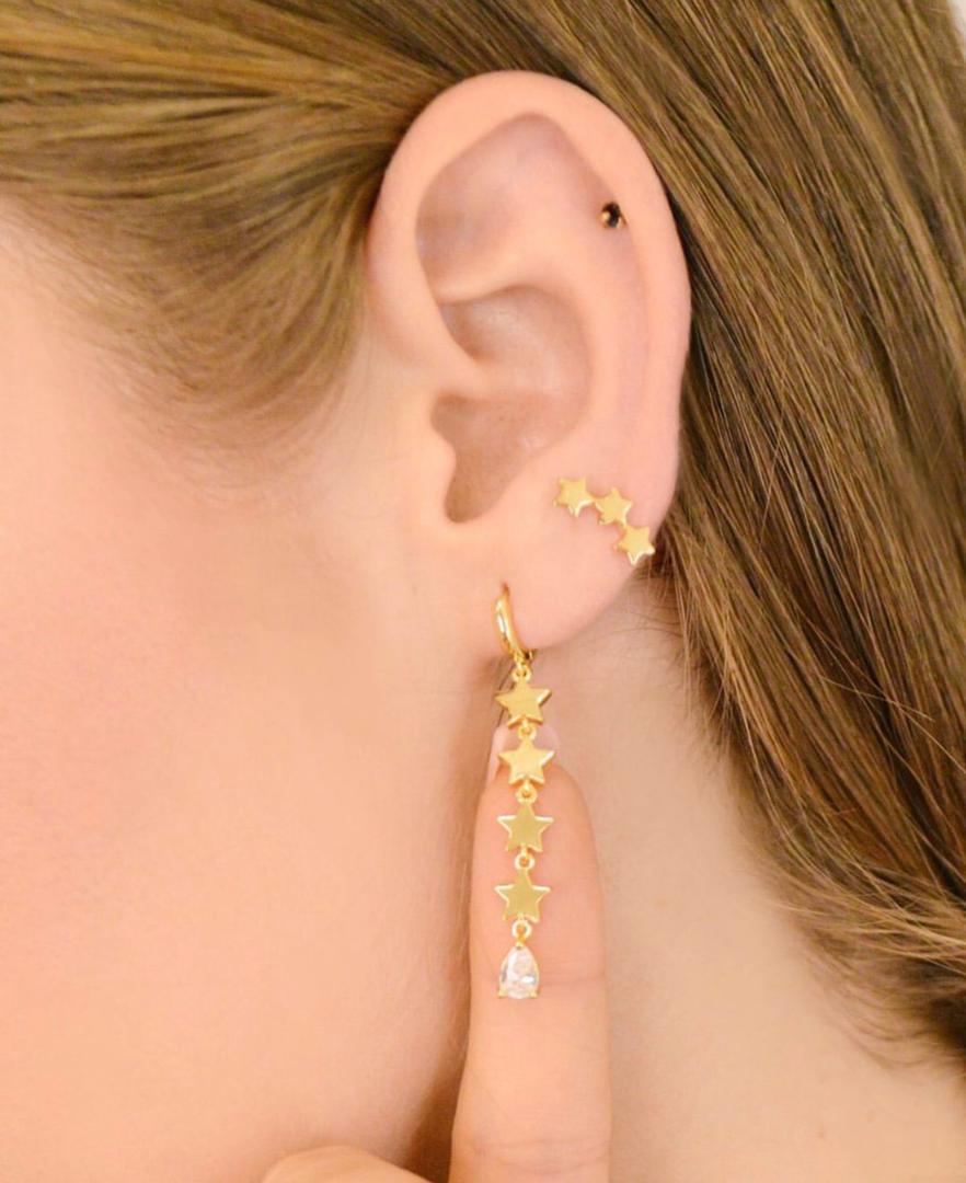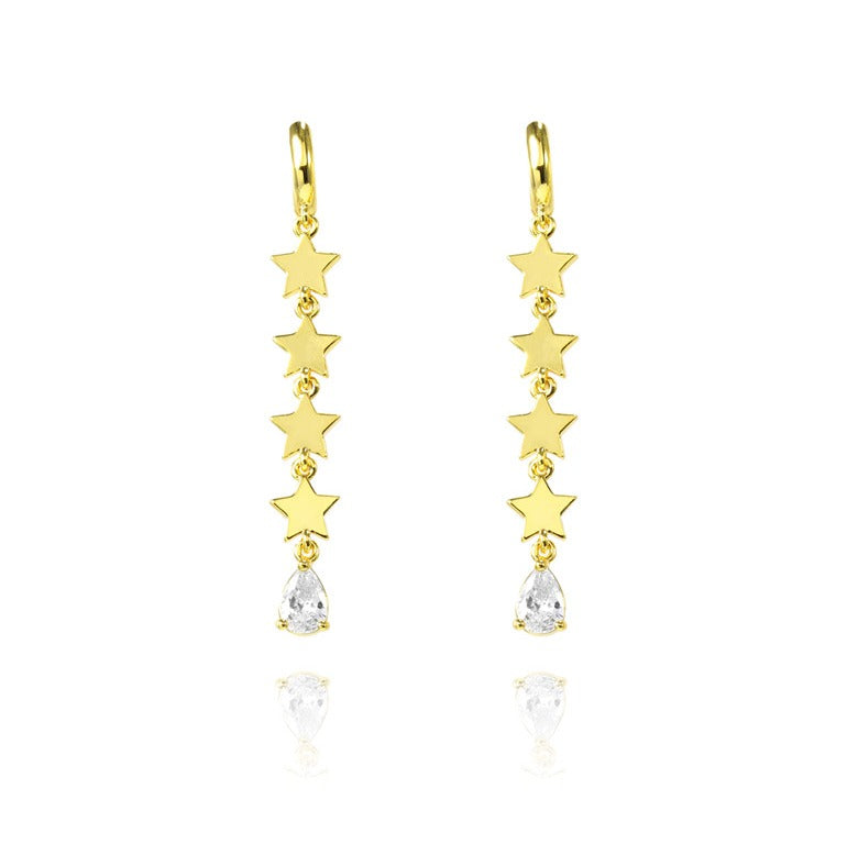 Huggies largos con una perfecta constelación de estrellas y terminación en cristal cortado en gota para sobresalir en eventos importantes o incluso con tu outfit favorito.