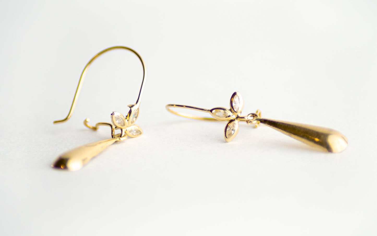 Arete arillo 3 pétalos con piedra y gota lisa