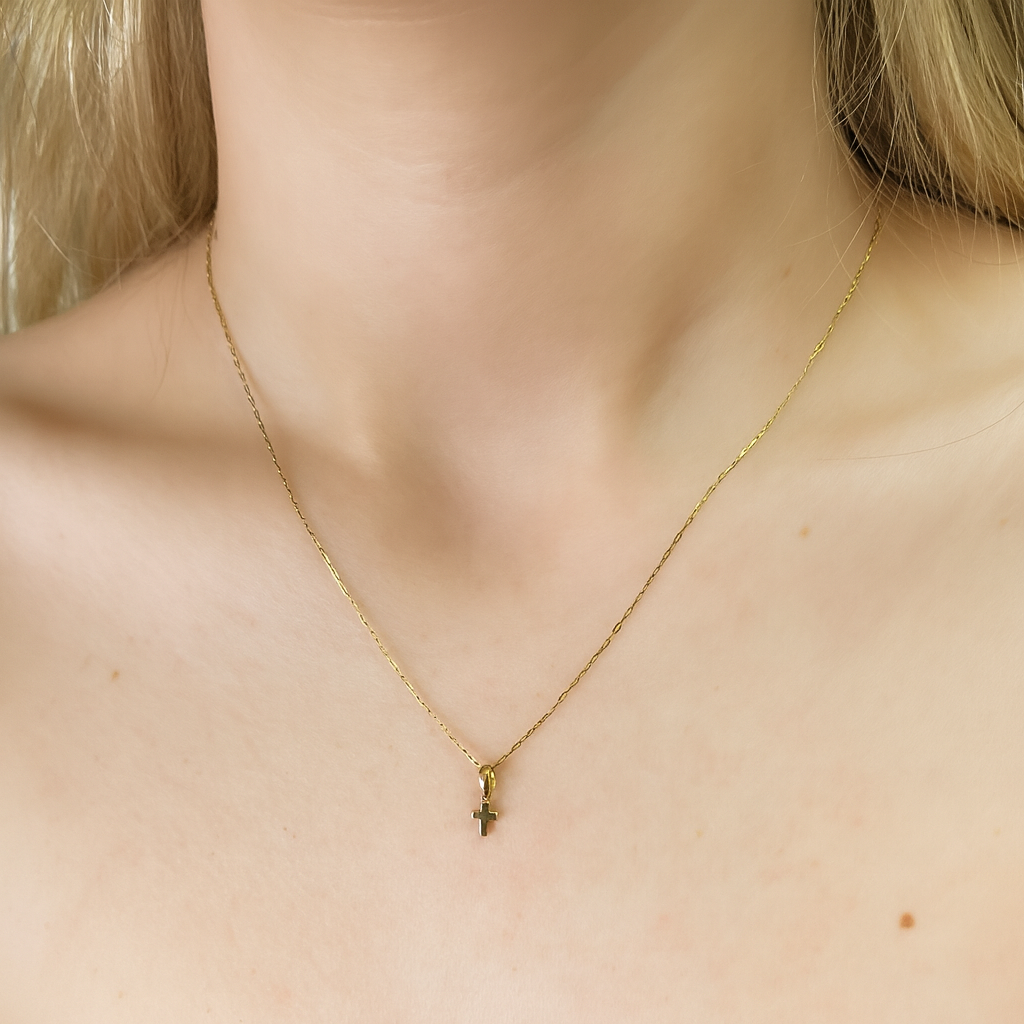 Dije oro solido 10k en forma de mini cruz lisa